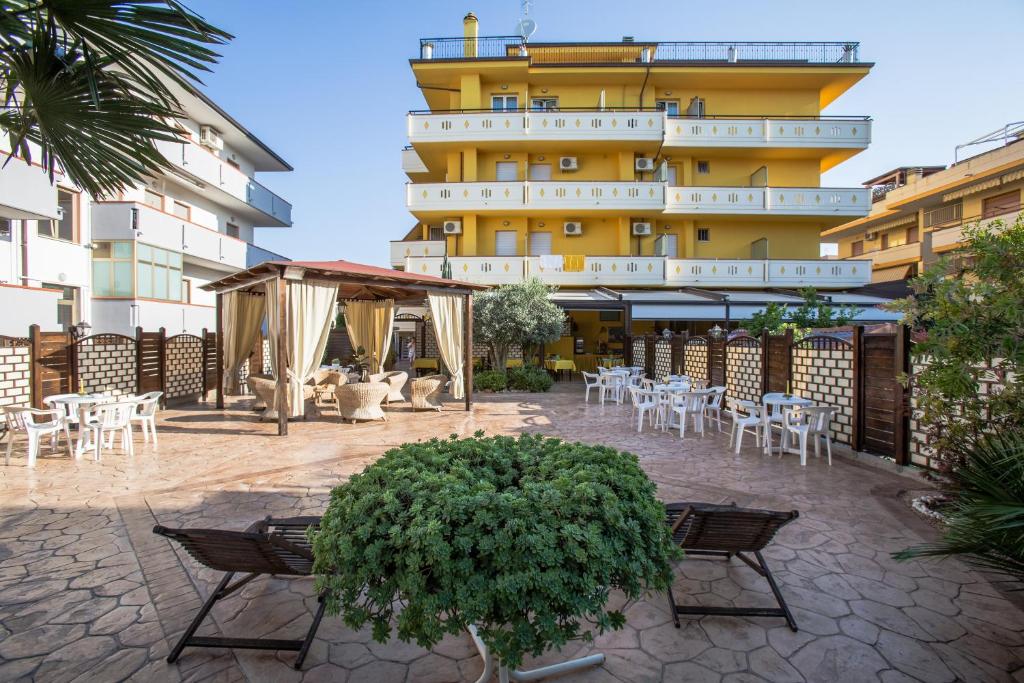 In posizione tranquilla a circa 100m dall’ampia spiaggia sabbiosa di Alba Adriatica, l’hotel completamente rinnovato e climatizzato, dispone di tutte le comodità per un soggiorno sereno e confortevole, parcheggio privato con pensiline ombreggianti non custodito (chiuso e recintato), ascensore, sala tv e sala ristorante, giardino con area giochi bimbi.