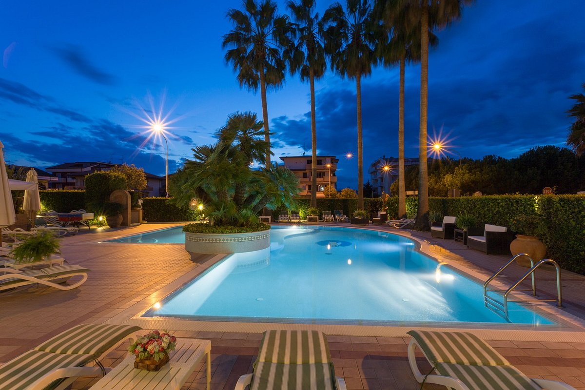Con la tranquillità e l’eleganza a soli 50 mt. dal mare, nel cuore dell’accogliente cittadina di Alba Adriatica, questo nuovo complesso residenziale risponde a tutte le Vostre esigenze per una vacanza ideale. Grande e confortevole Hall climatizzata, bar con sala TV, personale sempre a disposizione per allietare il Vostro soggiorno. Grande e confortevole hall, con divanetti e zona TV, giornali, libri e riviste varie, bar, connessione wifi anche nelle zone comuni, area giochi con ping pong e calciobalilla, mini area gym, noleggio biciclette e posti auto privati. Gli appartamenti bilocali e trilocali sono arredati con molta cura ed eleganza, dispongono di angolo cottura con forno a microonde, aria condizionata, TV satellitare, telefono, WiFi, cassaforte, servizi con doccia e ampi terrazzi con vista mare.
