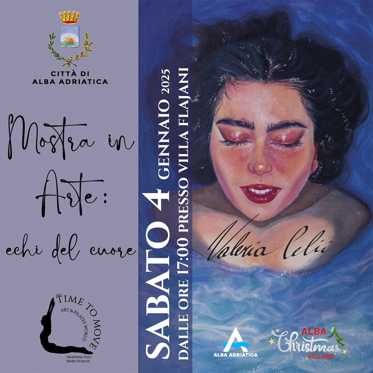 🎨✨ Mostra in Arte: Echi del Cuore ✨🎨 Sabato 4 gennaio 2025, alle ore 17:00, presso Villa Flajani, sarà inaugurata la mostra dell'artista Valeria Celii. Un viaggio emozionante nell’arte con la mostra “Echi del Cuore”, un’esposizione unica, ricca di colori, emozioni e significati profondi, che arricchirà il tuo Natale ad Alba Adriatica. Un’occasione da non […]