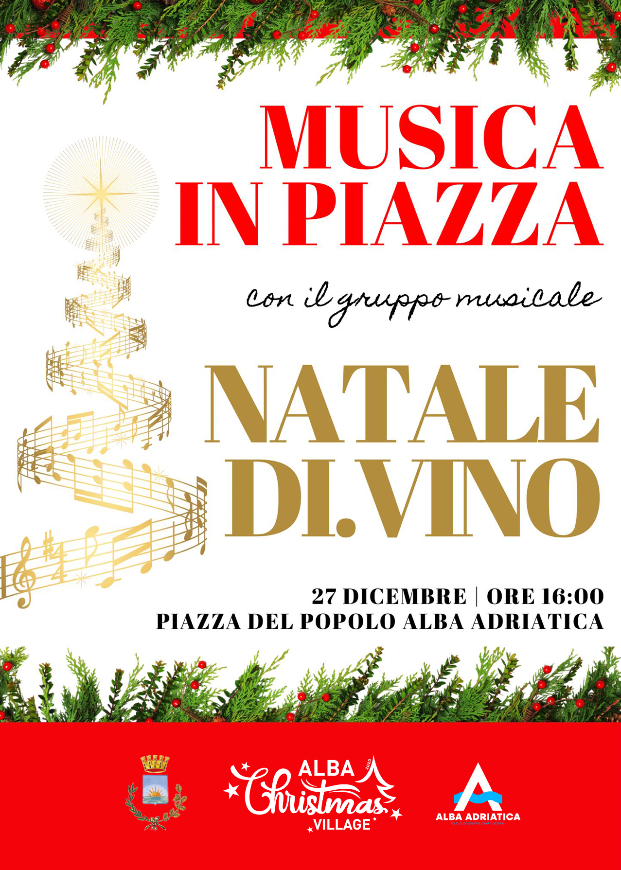 🎶✨ Musica in Piazza con il gruppo “Natale Di.Vino” 🎄🎤 Venerdì 27 dicembre 2024, ore 16:00, in Piazza del Popolo, Alba Adriatica, lasciati avvolgere dalla magia del Natale con le note dal vivo del gruppo musicale “Natale Di.Vino”. 🎷✨ Un pomeriggio all’insegna della musica, dell’allegria e dell’atmosfera natalizia nel cuore della città! Ti aspettiamo per […]