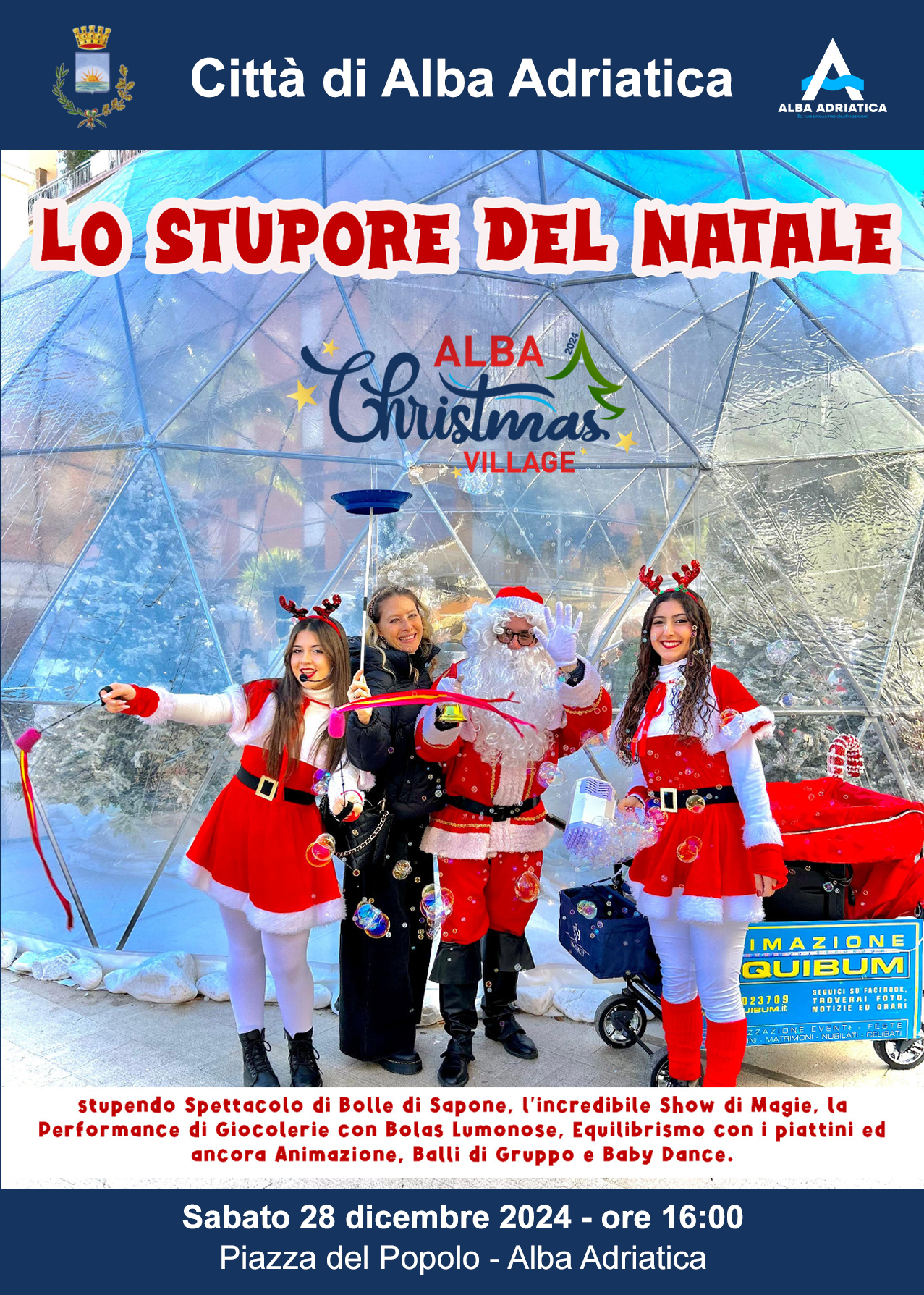 🎄✨ Lo Stupore del Natale ad Alba Adriatica! ✨🎄   Sabato 28 dicembre 2024, in Piazza del Popolo, preparati a vivere uno spettacolo magico e unico! 🌟   🎭 In programma: Stupende Bolle di Sapone che incantano grandi e piccini Un incredibile Show di Magia Sorprendenti performance di giocoleria con Bolas Luminose Equilibrismo mozzafiato con […]
