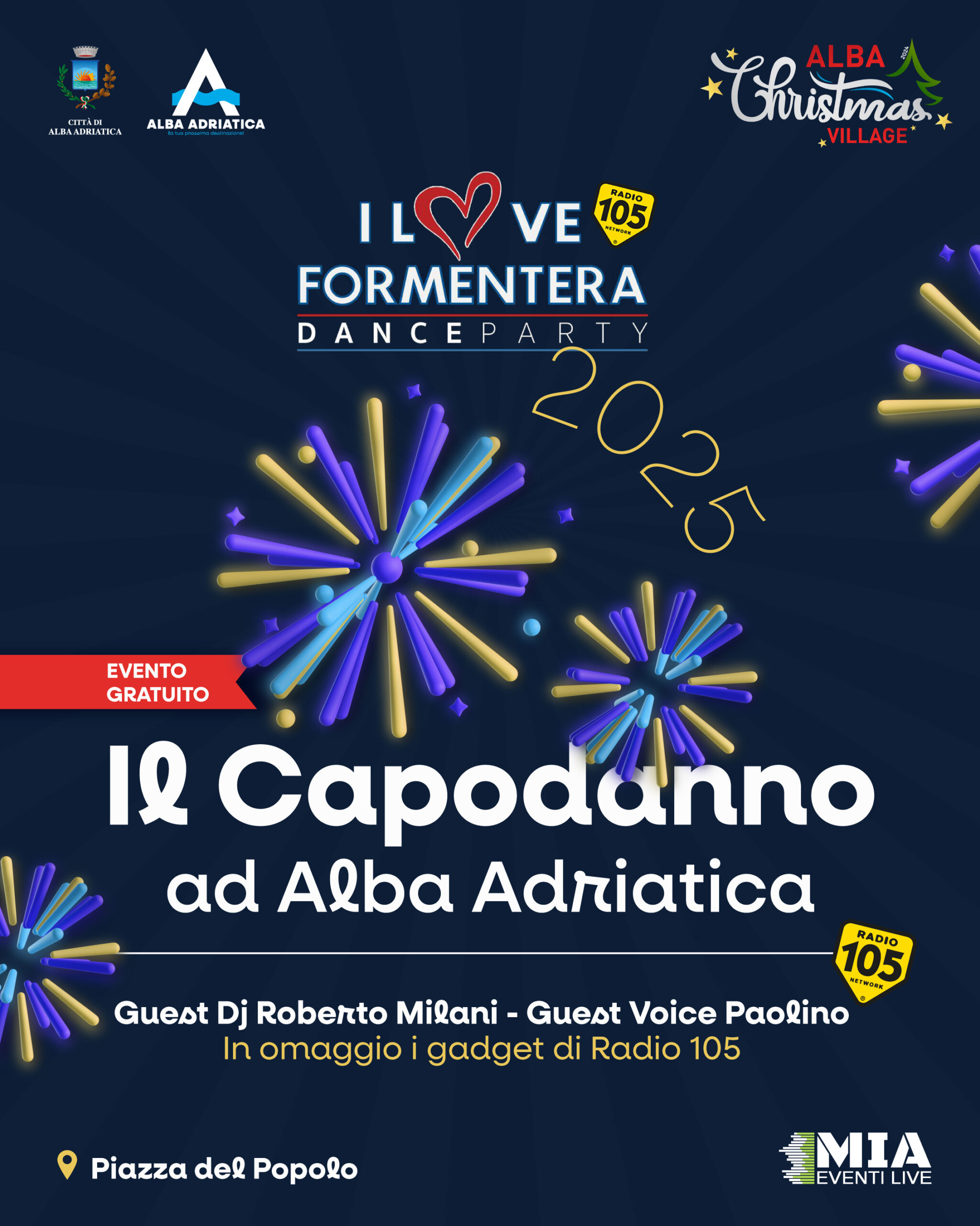 🎉✨ Il Capodanno di Alba Adriatica - Discoteca in Piazza con il Format più ballato d'Italia! ✨🎉   Il 31 dicembre 2024, in 𝐏𝐢𝐚𝐳𝐳𝐚 𝐝𝐞𝐥 𝐏𝐨𝐩𝐨𝐥𝐨 𝐝𝐚𝐥𝐥𝐞 𝐨𝐫𝐞 𝟐𝟑:𝟎𝟎, festeggia l’arrivo del nuovo anno con il ritmo travolgente di 𝐈 𝐋𝐨𝐯𝐞 𝐅𝐨𝐫𝐦𝐞𝐧𝐭𝐞𝐫𝐚 𝐃𝐚𝐧𝐜𝐞 𝐏𝐚𝐫𝐭𝐲 𝐩𝐨𝐰𝐞𝐫𝐞𝐝 𝐛𝐲 𝐑𝐚𝐝𝐢𝐨 𝟏𝟎𝟓! 🎧💃   🎶 In consolle: 🔥 Guest […]