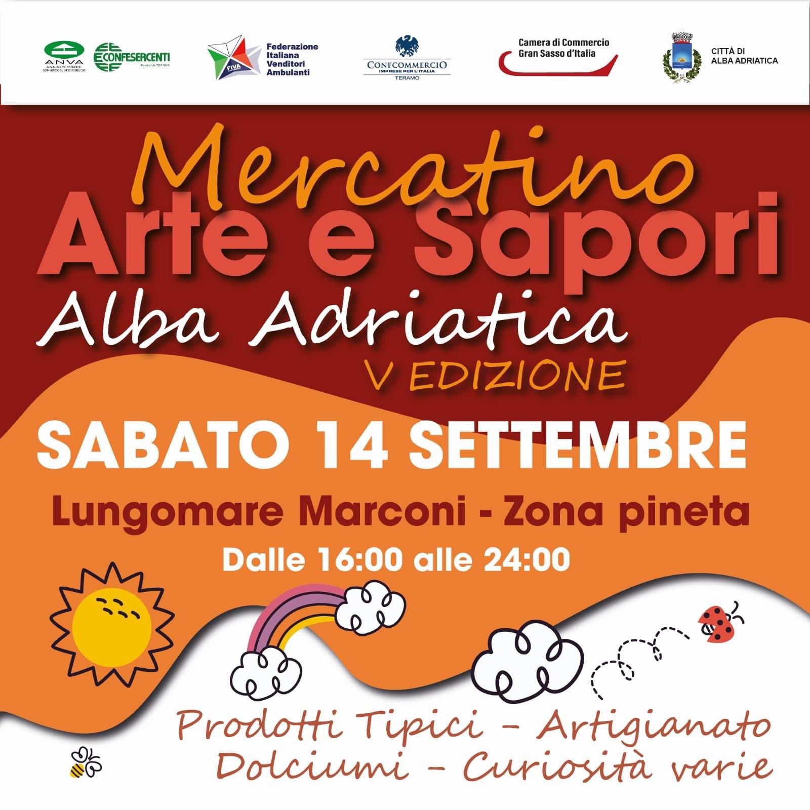 Prodotti tipici, Artigianato, Dolciumi e Curiosità varie presso passeggiata pedonale Lungomare Sud. Dalle ore 16:00 alle ore 24:00, da via Toscana a via Abruzzo (zona Pineta)